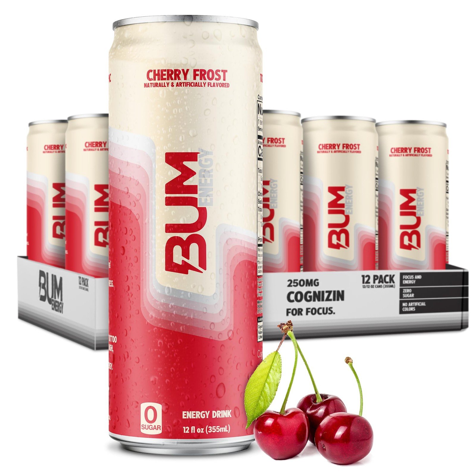 BUM Sugar-Free Energy Drink, Cherry Frost – Lightly Carbonated No Artificial…
