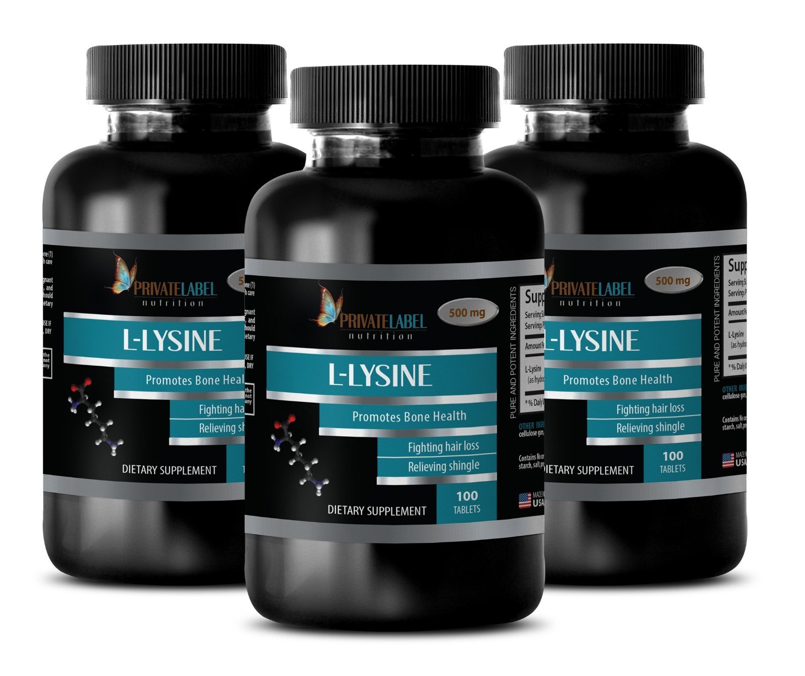 Muscle Food – L-LYSINE 500mg – Sports Supplements – 3 Bottles 300 Tablets